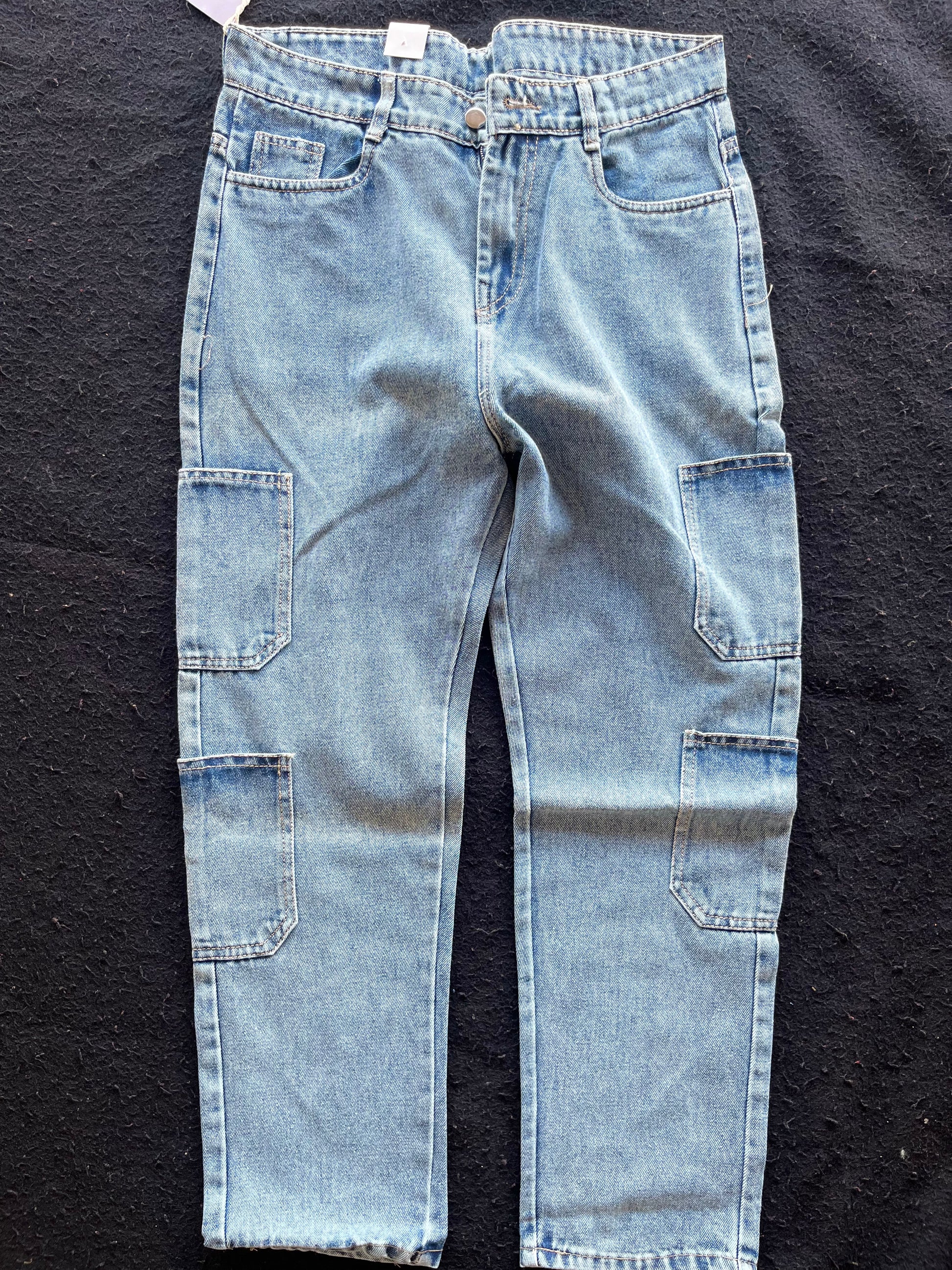 • Style: Cargo Jeans or Utility Denim. They feature multiple pockets and a slightly looser fit, typical of the cargo style.