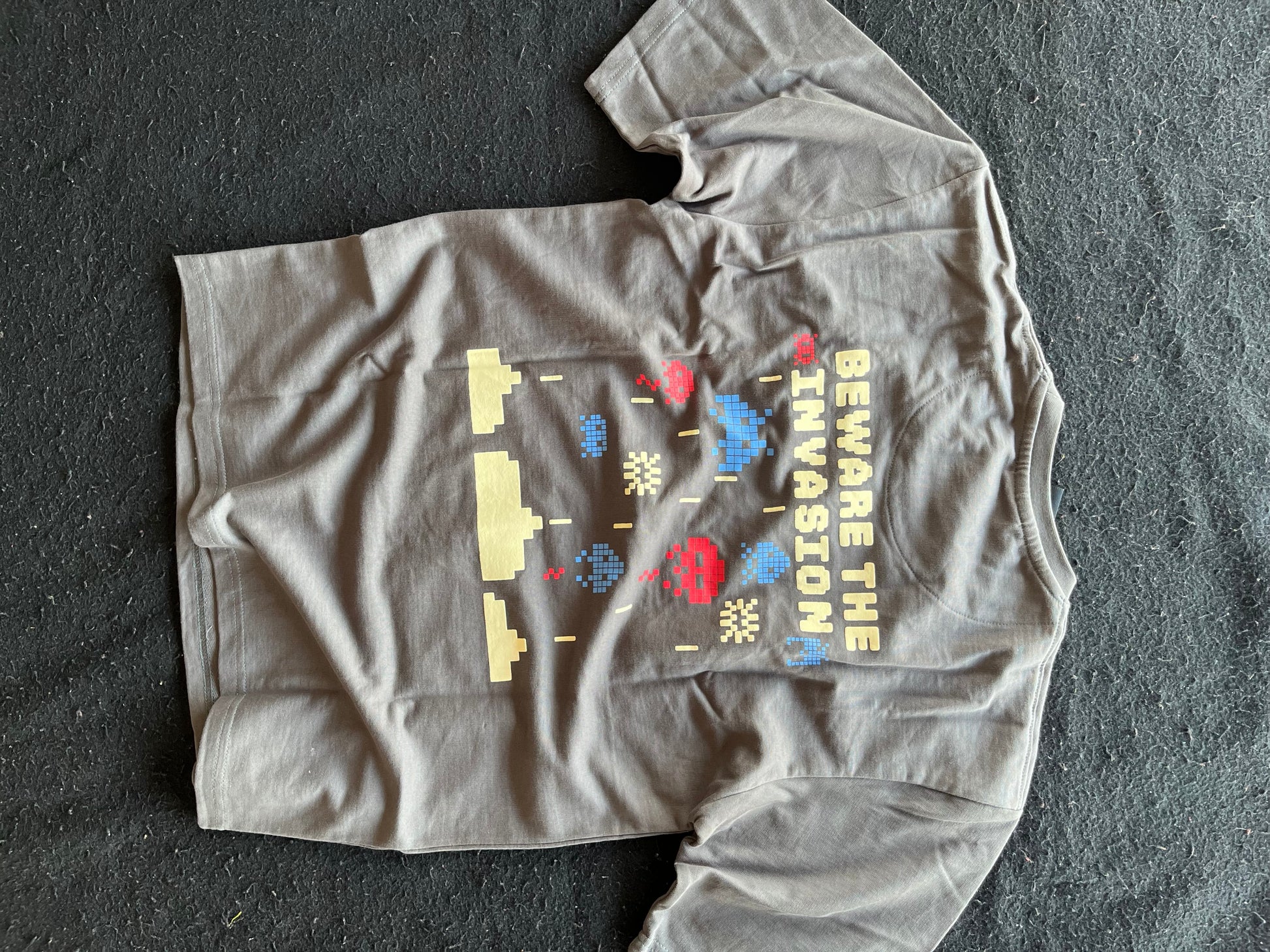 • Fabric: Likely a cotton jersey or a cotton blend, characteristic of standard graphic tees.
