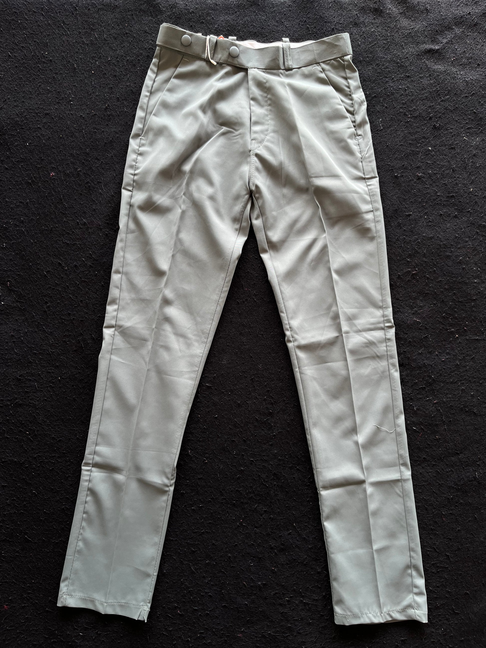 • Fit and Cut: They have a high-waist design, with a relaxed fit through the hip that tapers down towards the ankle. The length appears to be cropped (stopping above the ankle), which is a common modern style for dress pants.