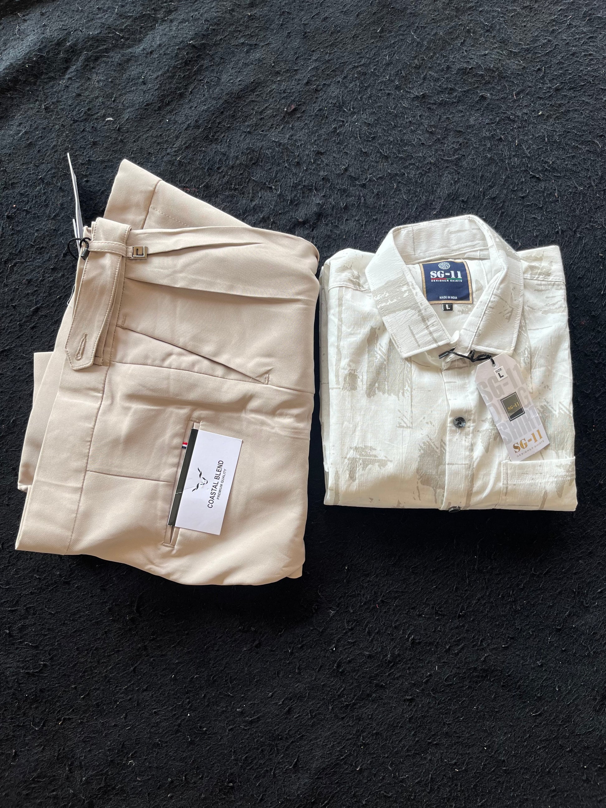 Overall, the combination presents a sleek and contemporary look, focusing on comfortable fabrics and a cohesive neutral color palette.